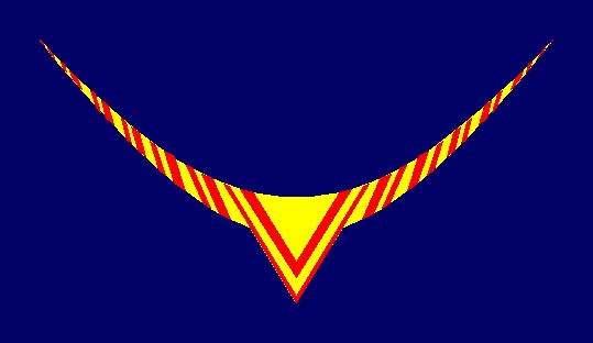El diseño de la pañoleta era triangular con color base amarillo y con un borde delgado color rojo, de tal manera que formaba un espiral en cada brazo de la pañoleta al enrollarse y dejando a la espalda de quien la porta, un diseño idéntico a la pañoleta misma.